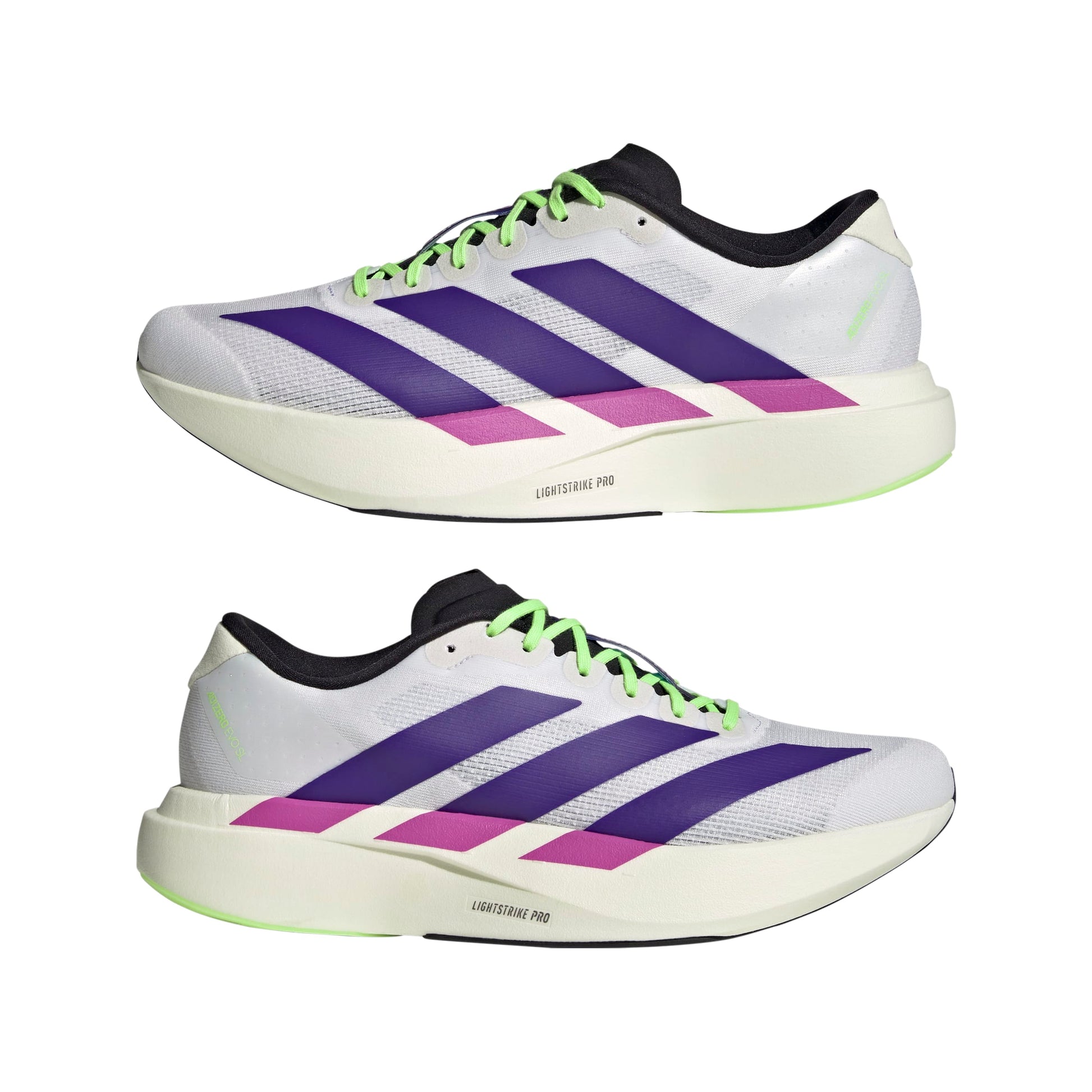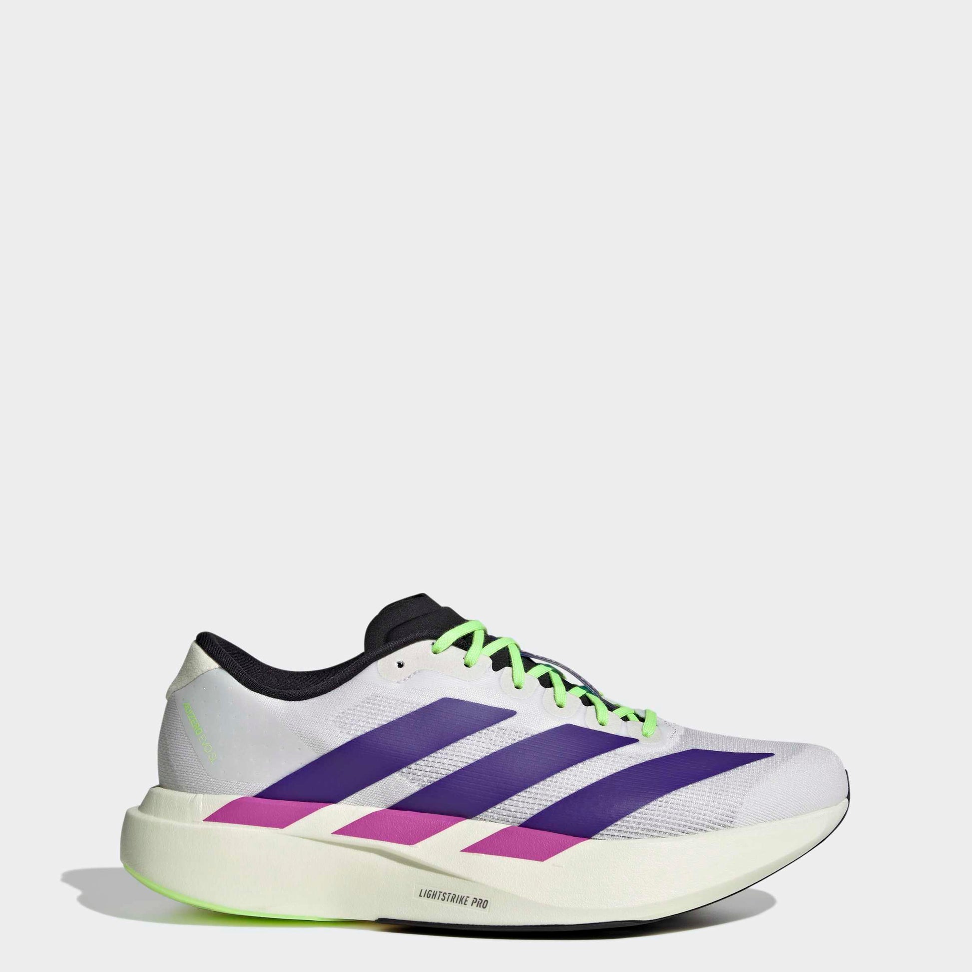 Experience the feeling of fast in the Adizero Evo SL. Inspired by the innovation of record-breaking shoes in the Adizero running family - and specifically the Pro Evo 1 - the Evo SL is designed for you to run in it, or not. Combining Adizero technology with a bold and unique racing-inspired aesthetic, it's an evolution of speed in all aspects of life. A responsive layer of LIGHTSTRIKE PRO foam in the midsole provides comfort and cushioning for optimal energy return.