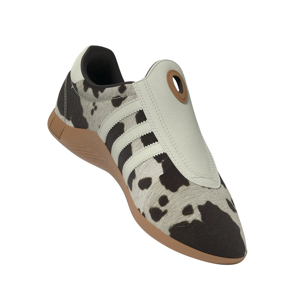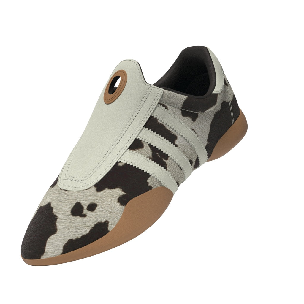 Originally introduced as a low-profile training shoe exclusively for women, the adidas Taekwondo Mei Shoes is back, bringing fashionable flair to the forefront of your everyday street style. These slip-on shoes are made with a premium cow leather upper with a pony hair finish, and are smoothly lined with synthetic material. The split rubber outsole is as minimal as it gets, keeping you low to the ground. Serrated 3-Stripes extend down the sides and under the arch for an all-around, authentic style.